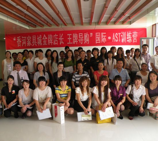2010年7月27日,“香河家具城金牌店長(zhǎng) 王牌導(dǎo)購(gòu)——國(guó)際•AST第九十六屆訓(xùn)練營(yíng)”在香河家具城紅星美凱龍館6層會(huì)議室圓滿落幕.
