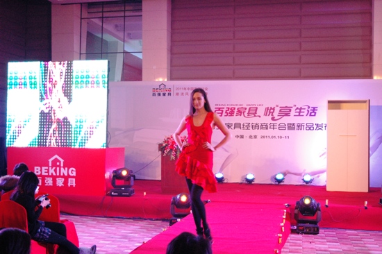 2011年1月10日,北京家具龍頭企業百強家具在北京順義喬波酒店隆重舉行了“百強家具,悅享生活——2011百強家具經銷商年會暨新品發布會”,并重磅推出了百強宅配衣帽間和百強新實木家具兩款新品,彰顯了企業不斷進取致力打造中國家具帝國的雄心壯志。