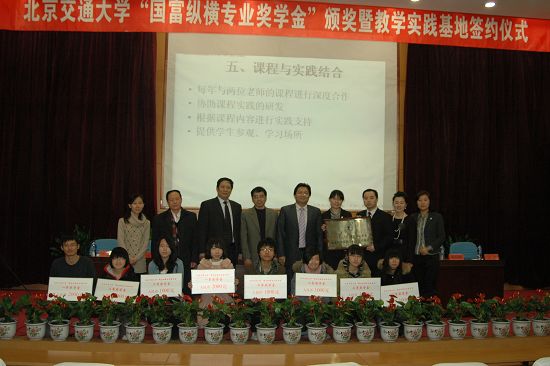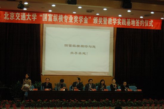 2010年12月23日,北京交通大學“國富縱橫專業獎學金”頒獎暨教學實踐基地簽約儀式在北京交通大學禮堂隆重舉辦。