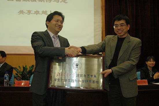 上圖:北交大建筑與藝術系沈永清主任授予國富縱橫牌匾